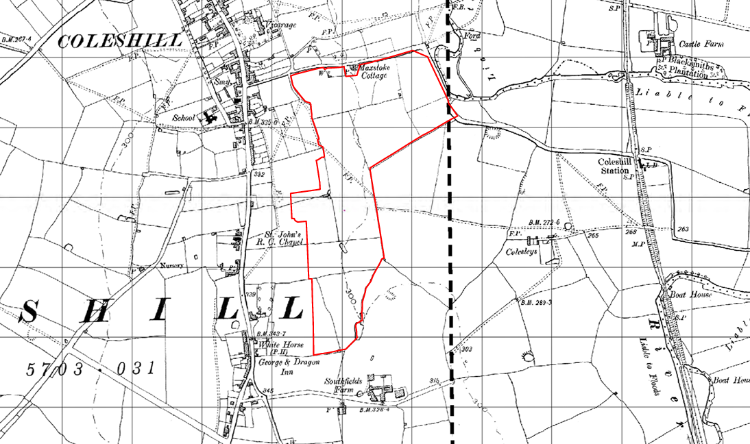 Later 18th century mapping depicts a settlement at Coleshill along the High Street. The more detailed 19th century mapping shows the site located within agricultural land. By the mid-20th century parts of the site are shown to have been terraced and used for a sports track with a pavilion and swimming pool. The terracing can still be seen although the sports track, pavilion and swimming pool are no longer in place.
