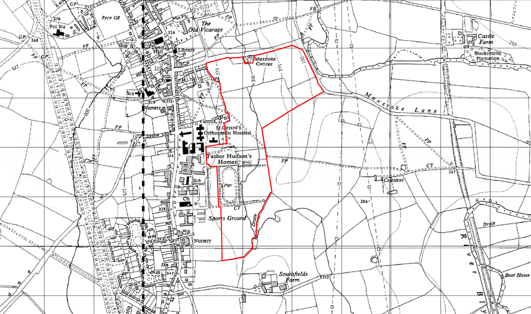 The site for the proposed development extends to approximately 19.55 hectares (ha). It is located on the east side of Coleshill. Maxstoke Lane forms the northern boundary of the site, while the western boundary is formed of existing residential development in Coleshill, including the existing care facilities operated by Father Hudson’s Caritas.
