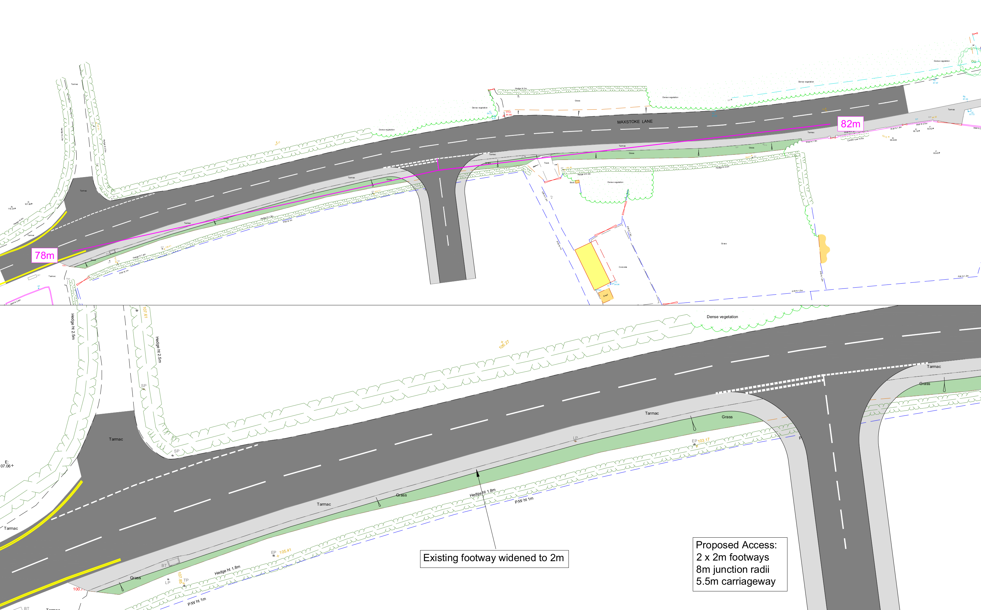 Primary vehicular access will be provided from Maxstoke Lane to the north via a simple priority junction, in addition to a connecting pedestrian footway which will provide access to the local facilities and amenities in the centre of Coleshill. The design of the junction including the necessary visibility splays is being informed by recent traffic survey data that has recorded speeds and volumes of passing vehicles.